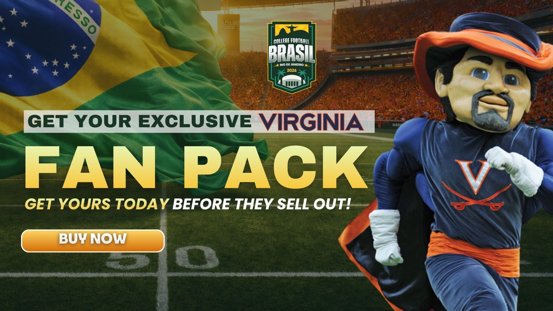 Explore packages and learn more: collegefootballbrasil.us/uva. Priority access to the best seating and hotel placements ends March 31. Don’t miss your chance to see the Cavaliers make history in Rio!